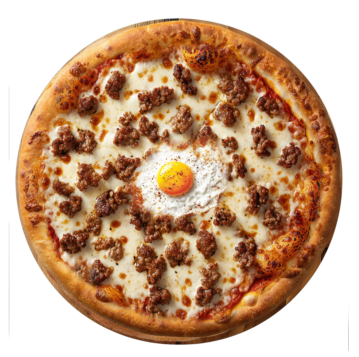 Tomate, fromage, chorizo, merguez, oeuf, huile d'olive, origan.